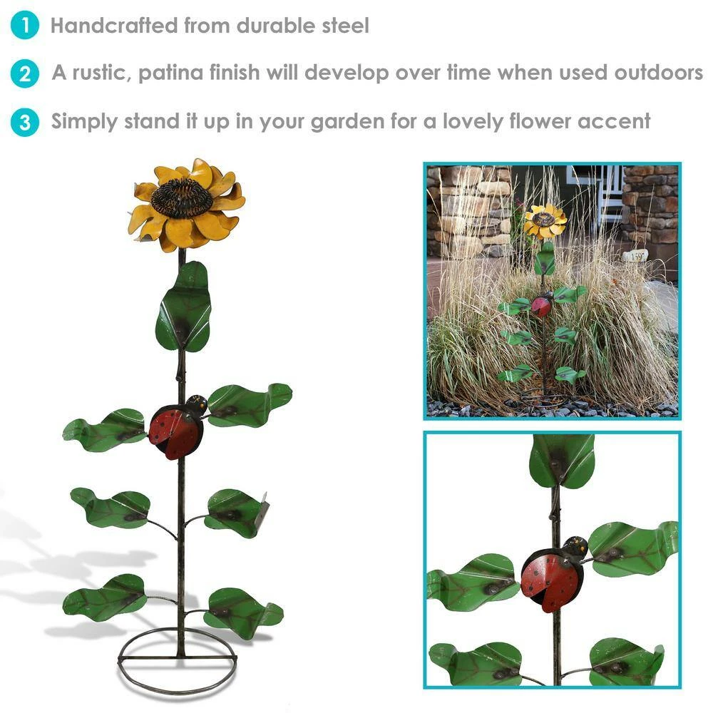 - Lifelike outdoor decoration: a bright yellow sunflower, like the 1 at the top of this stake, is sure to add a pop of color to any outdoor space, a ladybug crawls up the stem to rest on the petals
