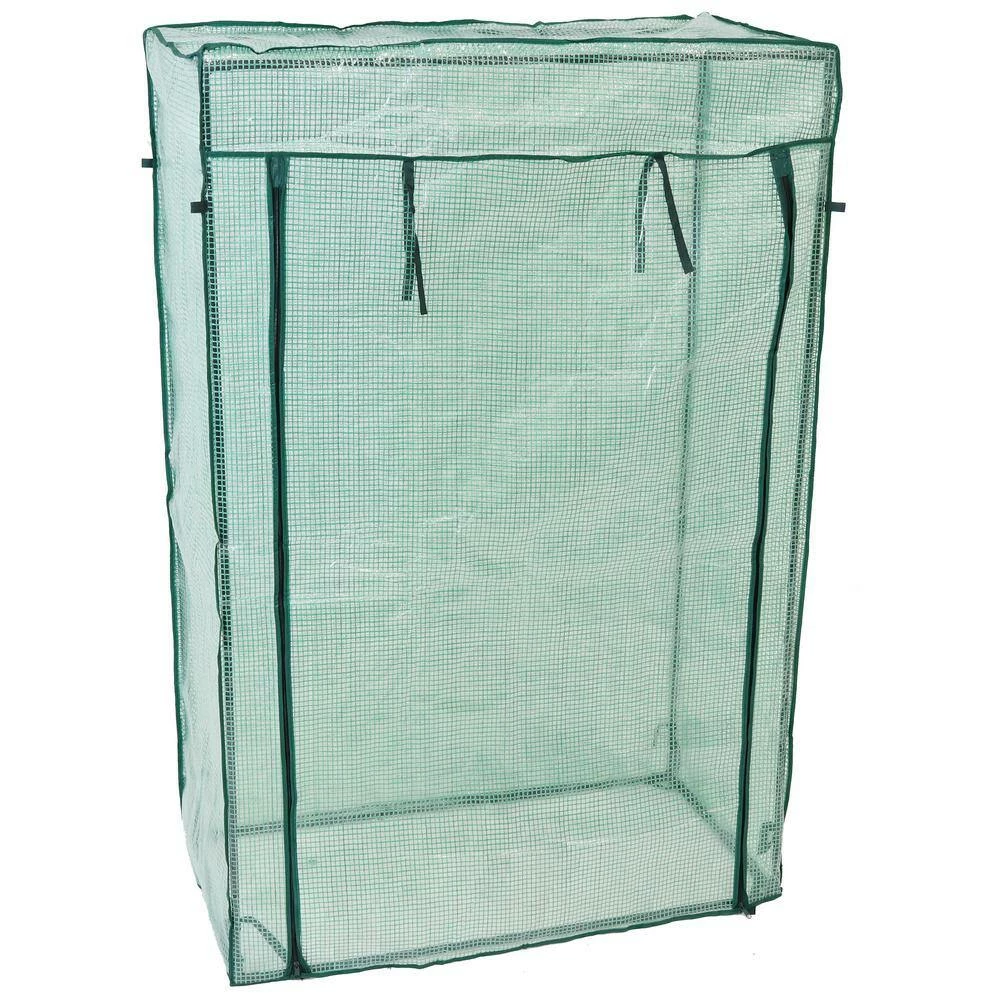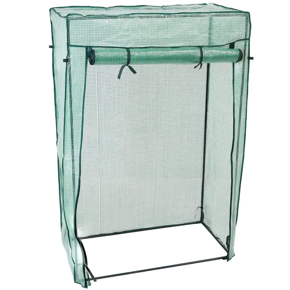 Grow beautiful vegetables, fruits and flowers easily with this portable tomato starter greenhouse. Place potted plants on the ground in the greenhouse or build the greenhouse over a garden to protect and promote growth for your tomatoes, peppers, beans and other plants. Durably constructed from an iron tube frame with a polyethylene covering coated with a UV ray protective finish, this tomato house is sure to keep your plants safe during inclement weather. The cover is transparent to allow plenty of Sunlight to shine through. A roll-up door with side zippers keeps your plants contained and allows you to control airflow in and out of the greenhouse.