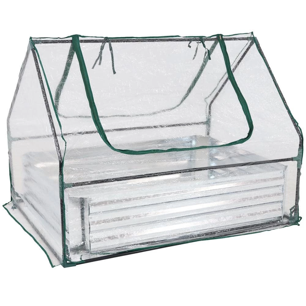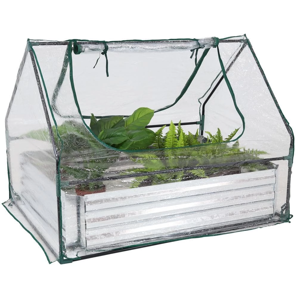 This raised garden bed greenhouse creates the perfect environment for planting flowers, herbs and vegetables. This covered planter kit includes a miniature greenhouse made with PVC panels and a steel tube frame as well as a galvanized steel planter box. This covered gardened bed places your plants at the perfect level allows you to reach them without stooping or bending. The greenhouse cover protects your plants from frost, intense heat and excessive moisture. It’s perfect for the porch, backyard or patio.
