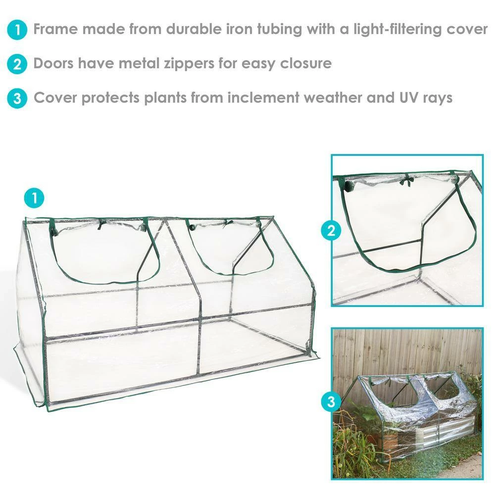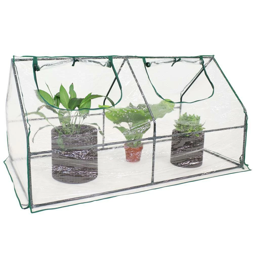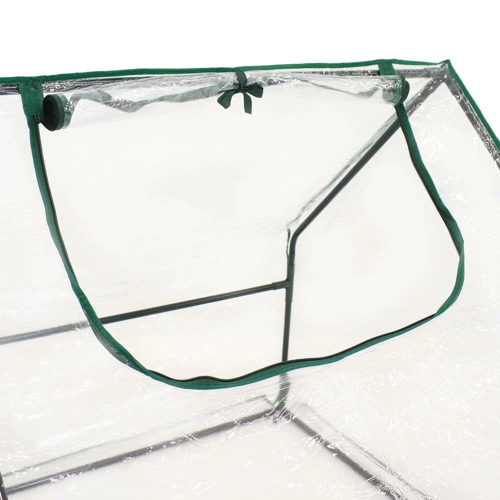 Protect your plants from harsh weather and create the perfect growing environment at home with this easy-to-use mini greenhouse. with a frame made from strong iron tubing and a durable PVC covering coated with a UV ray protective finish, this portable cloche greenhouse is the perfect option for growing vegetables, fruits, plants, and flowers. The cover protects plants from UV rays and inclement weather like frost, excessive heat, and moisture. The cover is transparent to ensure plants receive the perfect amount of sunlight. Zippered doors allow you to control air flow in and out of the greenhouse and give easy access to your plants.