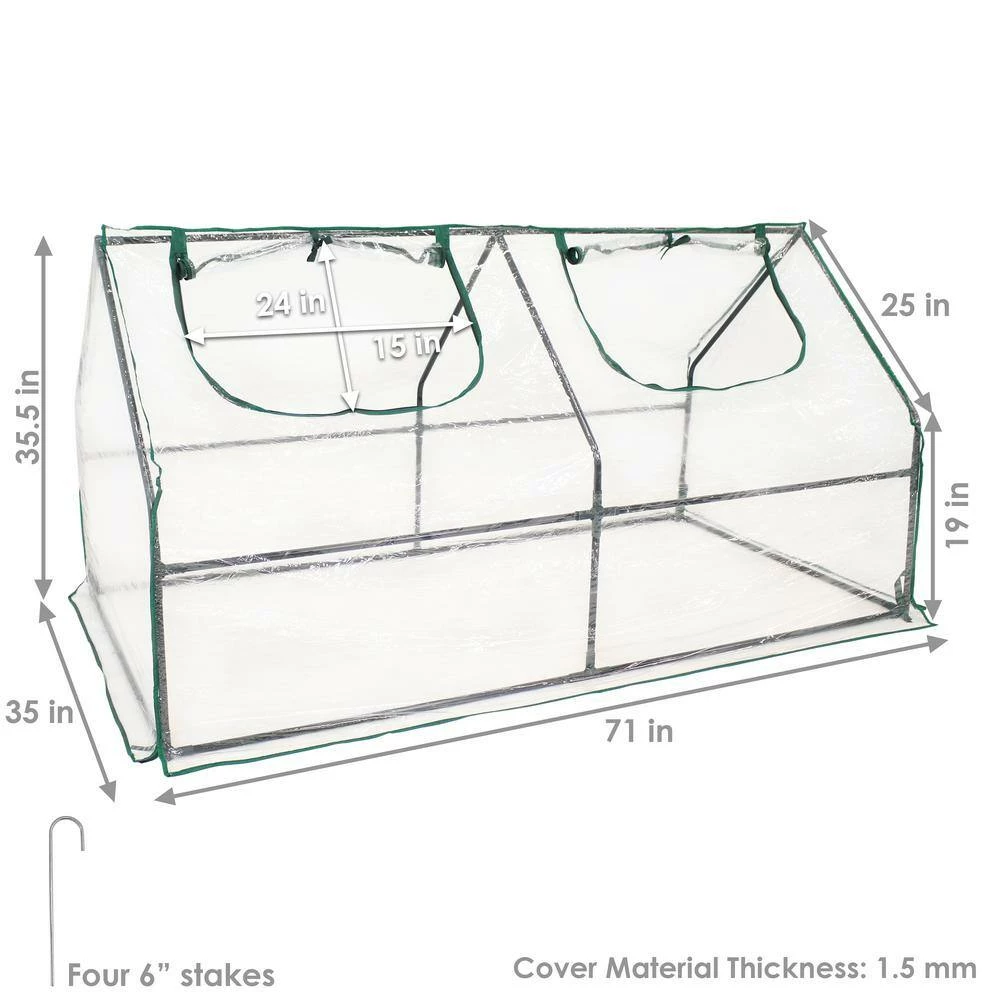 - Portable mini greenhouse: move this outdoor greenhouse across your yard, patio, or garden easily to ensure your plants receive the best sunlight to grow, this mini cloche greenhouse measures 71 in. W x 35 in. D x 35.5 in. H and weighs 5.8 lbs. the doors offer a 24 in. W x 15 in. H opening into the growing area