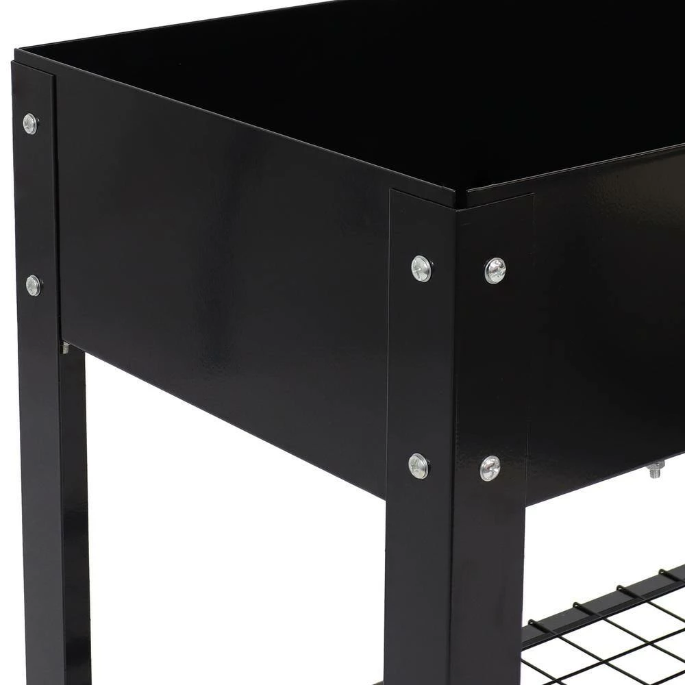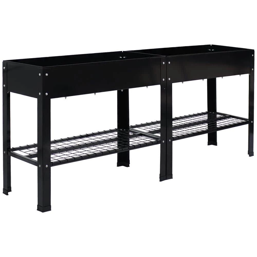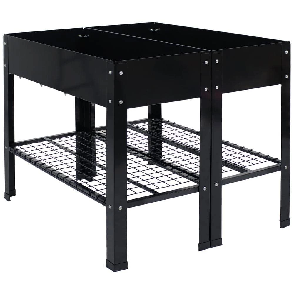 Grow beautiful flowers and bountiful vegetables without back straining or crouching down with these stylish and durable galvanized steel raised garden beds. This set of 2 standing planters can be used individually or connected together to create the best arrangement for your patio or garden. These raised garden beds are built to last with durable steel construction and a rust-resistant, hot dip galvanized finish in classic black for a sleek look. Plus, these raised garden beds with legs also feature a convenient lower shelf that can be used to store garden tools, gloves, and other supplies.