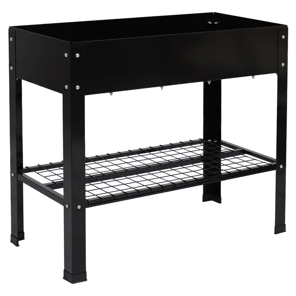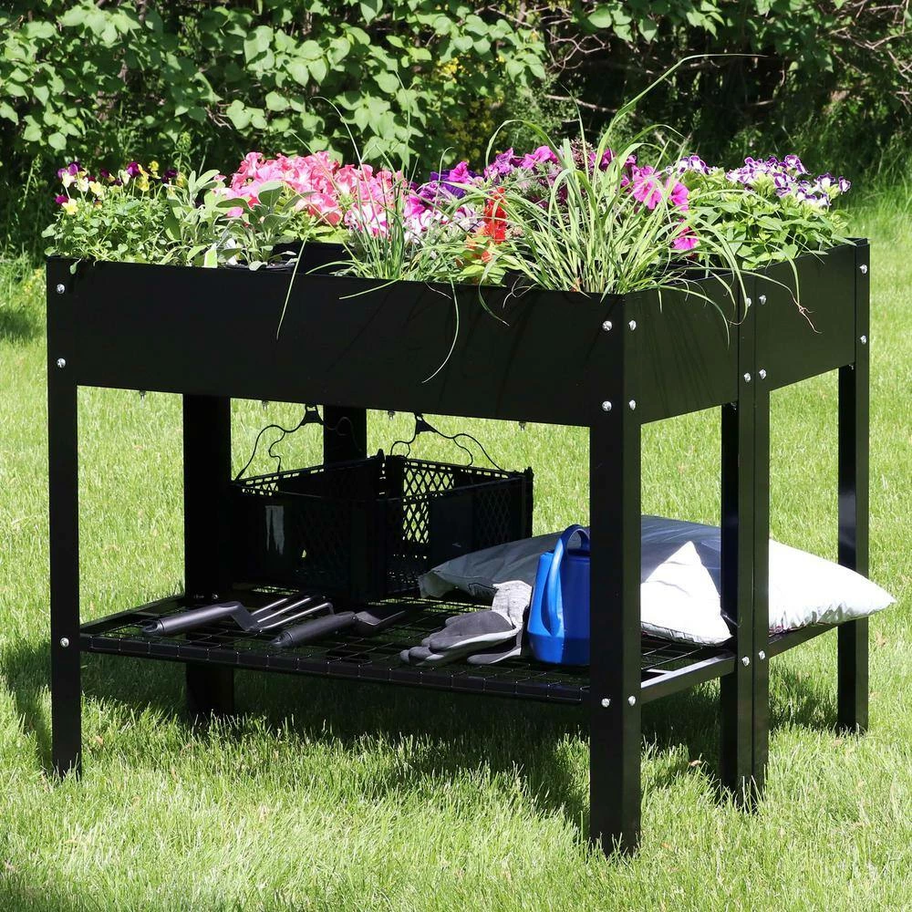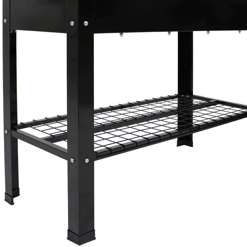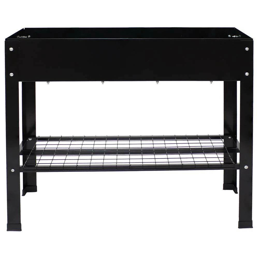 Grow beautiful flowers and bountiful vegetables without back straining or crouching down with these stylish and durable galvanized steel raised garden beds. This set of 2 standing planters can be used individually or connected together to create the best arrangement for your patio or garden. These raised garden beds are built to last with durable steel construction and a rust-resistant, hot dip galvanized finish in classic black for a sleek look. Plus, these raised garden beds with legs also feature a convenient lower shelf that can be used to store garden tools, gloves, and other supplies.