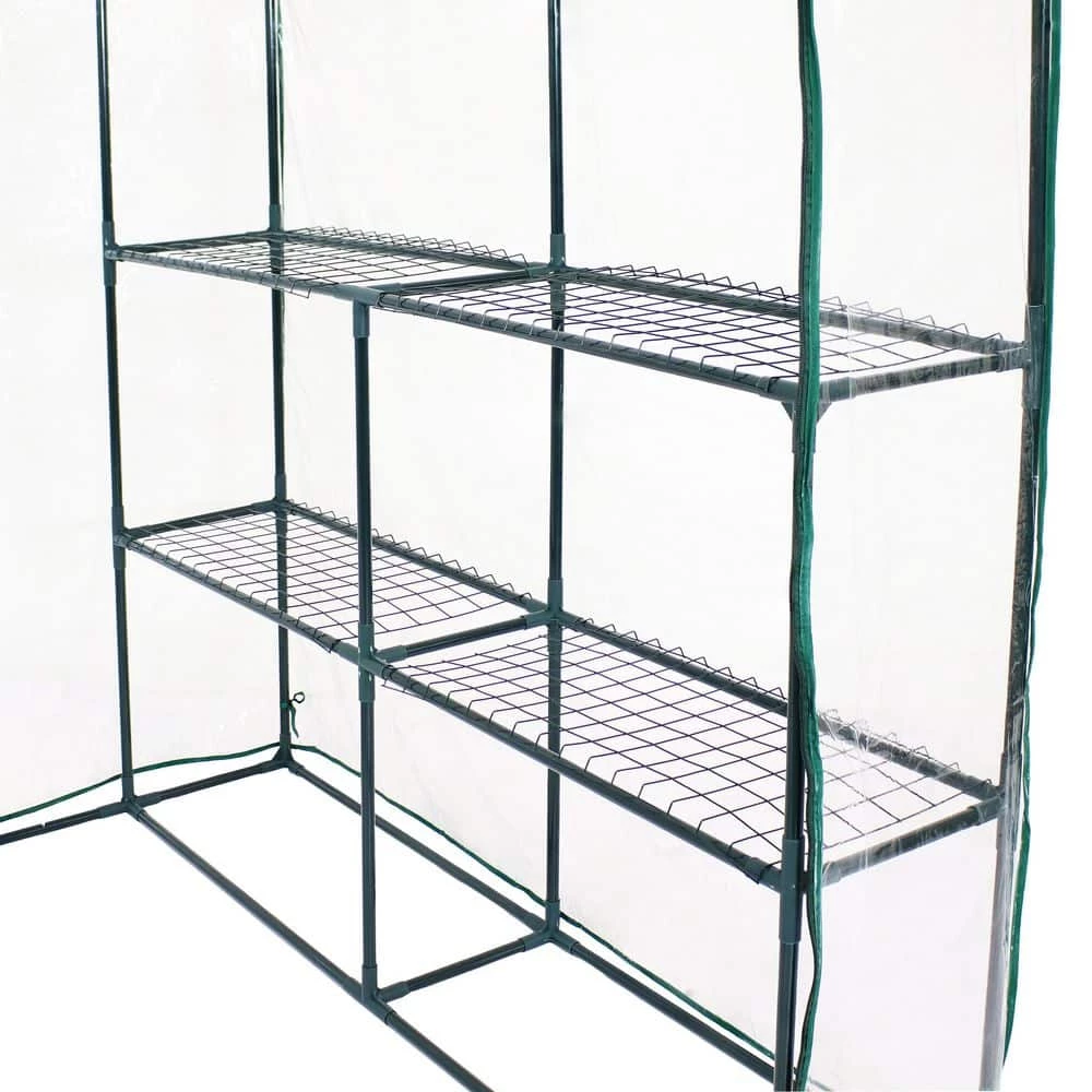- 4-shelf greenhouse: this mini walk-in greenhouse has 4 shelves to grow greenery, vegetables, herbs, flowers, and other plants outdoors, the shelves provide a great place to keep gardening supplies close at hand and to display growing plants, store the heaviest plants and planters on the lowest shelf