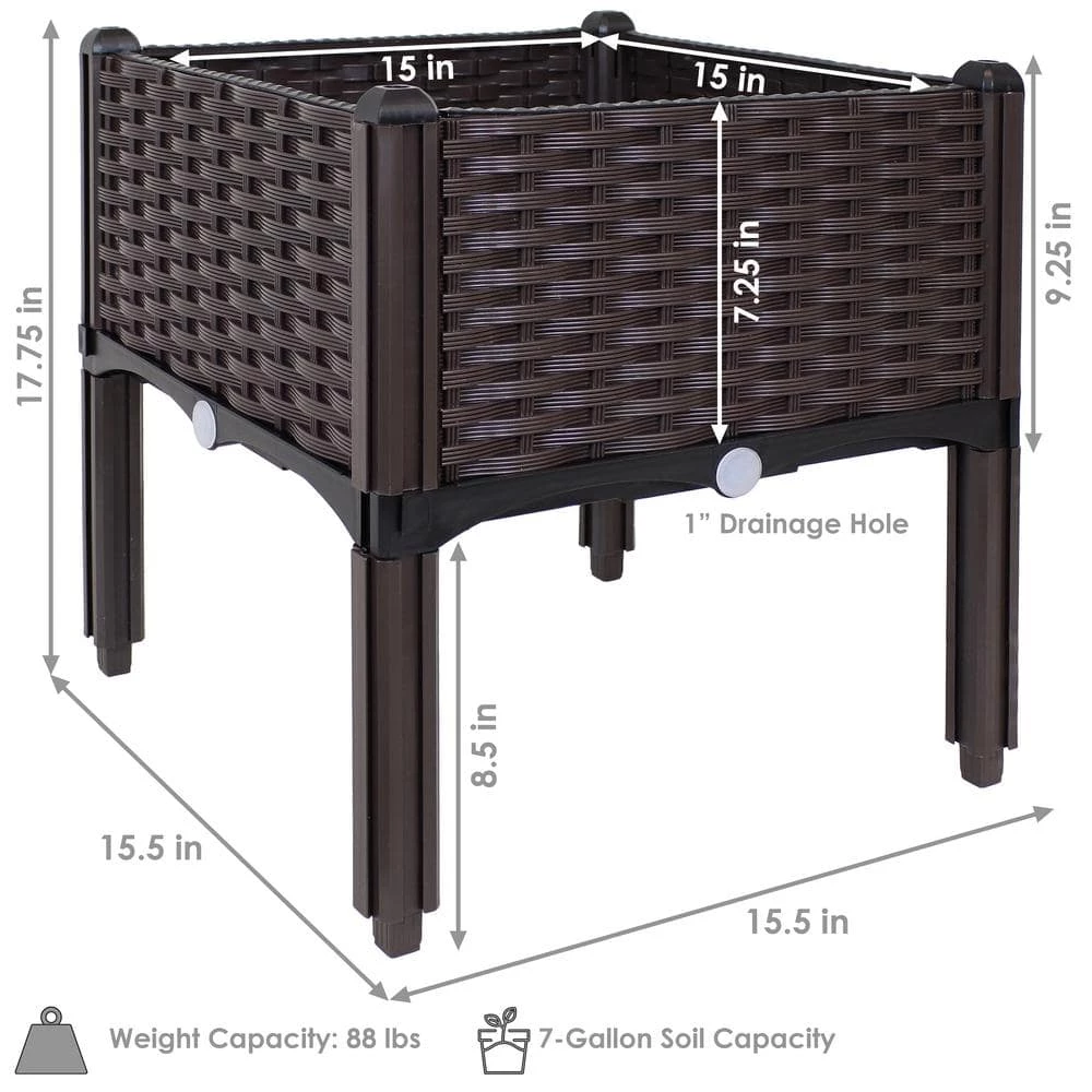 - Square raised beds: each individual square plastic planter box measures 15.5 in. W x 15.5 in. D x 9.25 in. H without legs, has an 88 lbs. weight capacity, and weighs 5.2 lbs. with legs, each box is 17.75 in. H. The overall size and shape of your garden bed depends on how it is assembled
